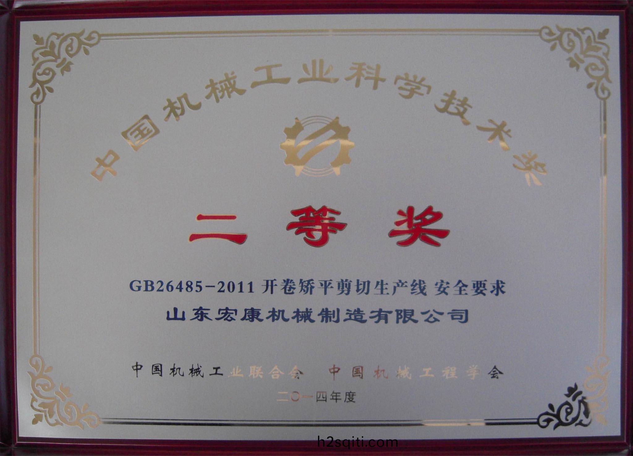 根据中国机械工业科学技术奖励工作办公室《关于表彰2014年度中国机械工业科学技术奖奖励项目的通报》,集团公司主持制定的《GB26485-2011 开卷矫平剪切生产线 安全要求》国家标准获中国机械工业科学技术进步二等奖。