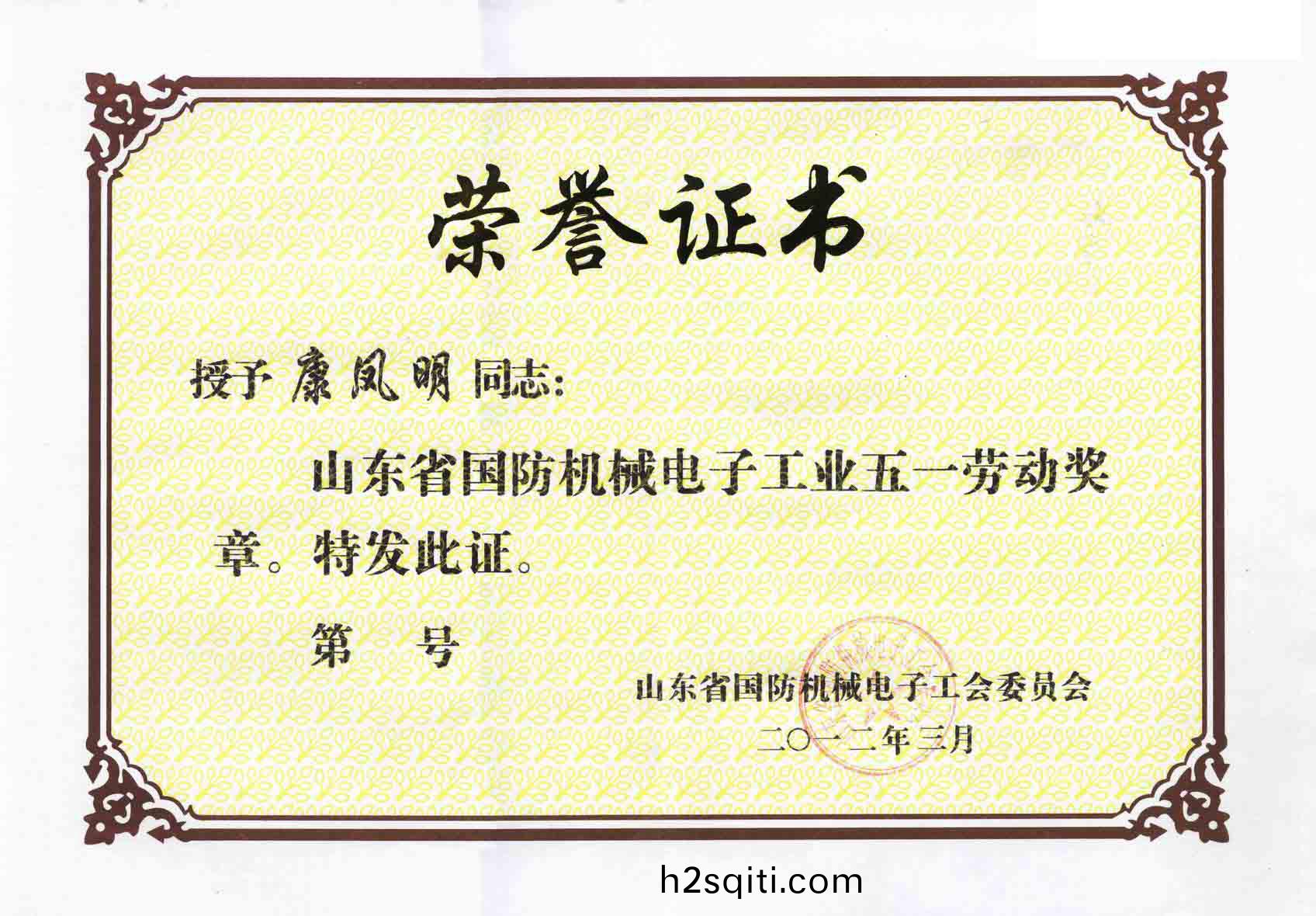 3月29日,山东省国防机械电子工会二届二次全委会暨女职委一届四次会议在济南胜利召开。会议隆重表彰了山东省国防机械电子工业“五一”劳动奖状(章)先进集体和个人,授予38个单位(班组)劳动奖状,61名同志劳动奖章。集团董事长、总经理康凤明荣获“五一”劳动奖章。