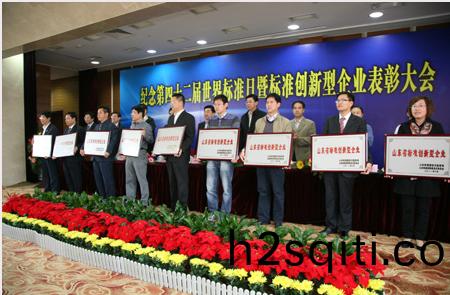 10月14日,山东省质量技术监督局、山东省经济和信息化委员会在济南舜耕山庄联合举行纪念第42届世界标准日暨全省标准创新型企业表彰大会,共同庆祝第42届世界标准日的到来,并对评选出的山东省首届标准创新型企业进行表彰。受董事长、总经理康凤明委托,集团常务副总经理潘宪平参加了此次表彰大会并上台领取“山东省标准创新型企业”荣誉牌匾。